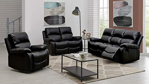 Bravich LUXURY Grey Black Bonded Leather Recliner Sofa Set Seater Reclining Sofa Suite Settee Couch Lounge Home Lounge Armrest Footrest