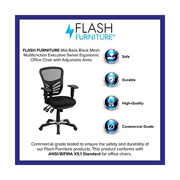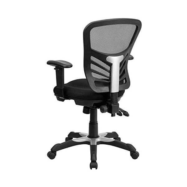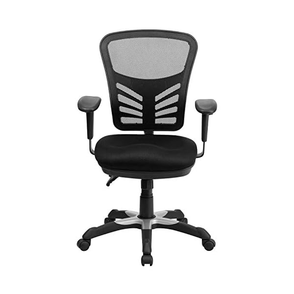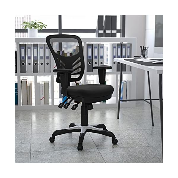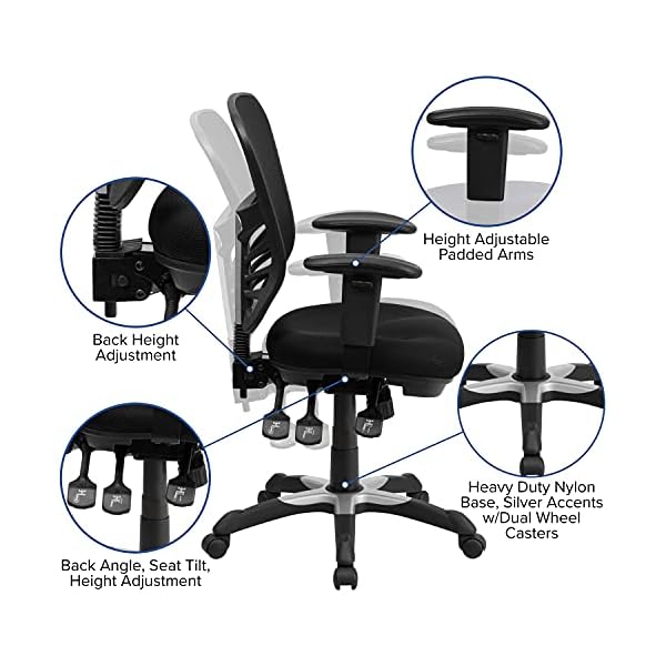 Office chair with back support: The ventilated and curved mesh back provides lumbar support and breathability by allowing cooling airflow