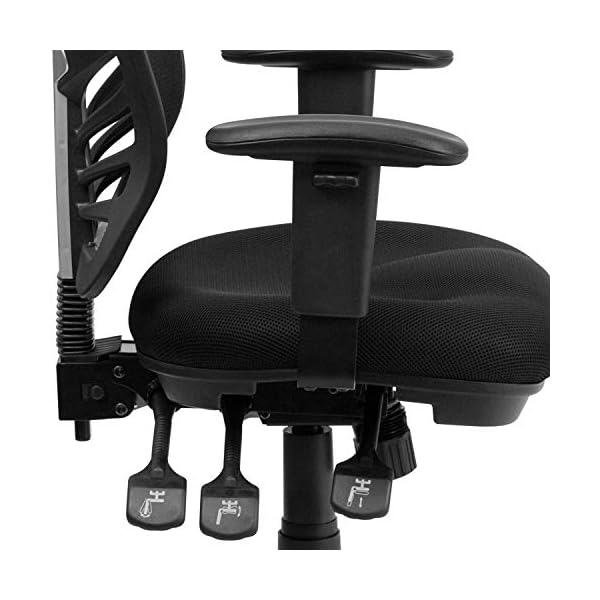 Three Paddle Control: Easily adjust the back angle, seat height, and tilt angle of the swivel chair using the three paddle mechanisms located under the seat