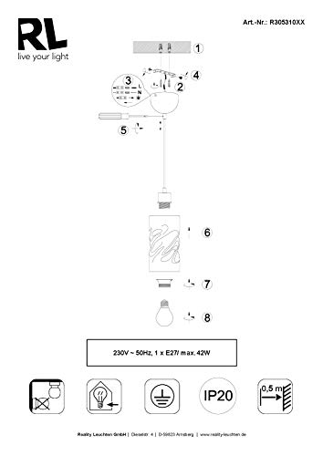 Light bulbs not included. Matching light bulb 1 x E27 max. 42 watts