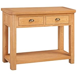 Everest Oak 2 Drawer Console Table with Modern Wax Finish | Wooden Side End Telephone Table