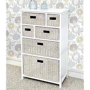 Tetbury Large White cabinet with 6 whitewash storage baskets, Solid hallway bathroom cabinet. Paneled sides and back. FULLY ASSEMBLED