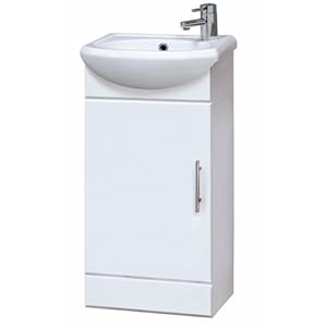 Nuie NVS100 Mayford | Modern Bathroom Floor Standing 1 Door Cloakroom Vanity Unit With 1 Tap Hole Basin, 420mm x 780mm, Gloss White, 420mm290mm, Set of 2 Pieces
