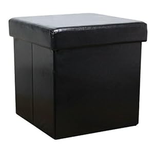 New Ottoman Foldaway Storage Blanket Toy Box Faux Leather Black 38x38cms