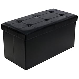SONGMICS Folding Pouffe/Ottoman With 80 Litre Container and Soft Seat for 2 – 3 People 300 Kg maximum Load Black LSF105