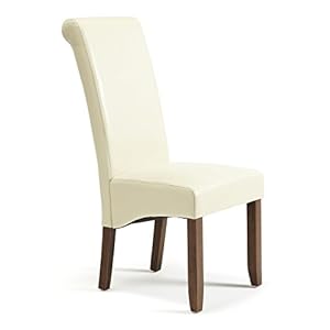 Serene Furnishings Kingston Faux Leather Dining Chairs with Hevea Legs Finished in Walnut, Set of Two, Cream
