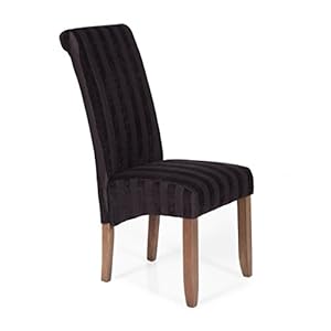 Pair of Serene Kingston Striped Fabric Dining Chairs in Aubergine – Hevea Walnut Finish Wood Legs