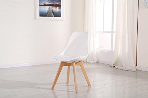 CrazyGadget® Inspired Dining Chair Natural Solid Wood Legs with Cushioned Pad Contemporary Designer for Office Lounge Dining Kitchen – White Polypropylene matt finish seat with faux leather cushion, extra comfort but easy to clean Solid shock resistant solid beech wood legs, greater support than normal chair, Ultra-stylish and surprisingly comfortable, the iconic chair is made from a moulded shell that’s designed for every ‘body’, Strong wood base Plastic stoppers on feet for scratch-free stability, protect both the chair and your wood ground, the white colour in our selection complements any decor. The polypropylene shell is dyed through, so the colour will never fade. Assembled dimensions: L52 x W48 x H82 cm. Seat height: 42 cm.