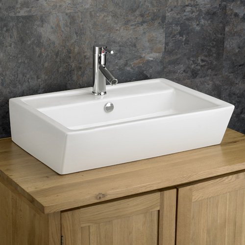 This High Quality Surface or Wall Mounted Rectangular Ceramic Wash Basin is perfect for larger sized bathrooms, ensuites and cloakrooms. The front sloping face adds a touch of difference from normal rectangular basins – something a little rarer than average..and a real focal point.