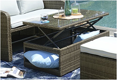 Inlcudes: 1x Loveseat || 1x Lift-Top Coffee Table || 2x Footstool