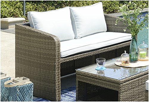 This rattan set is Low maintenance garden and indoor furniture made from Poly rattan which is dirt resistant, easy to clean and UV Protected. Simply wipe with a damp cloth. Suitable for Indoor and Outdoor Use with Comfortable & Sturdy Design. Perfect Furniture for Conservatories or Gardens to enjoy relaxing, entertaining friends and family on those sunny days and evenings. Lightweight but yet very sturdy and table has tempered safety glass top for your food and drinks.