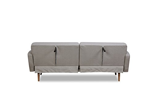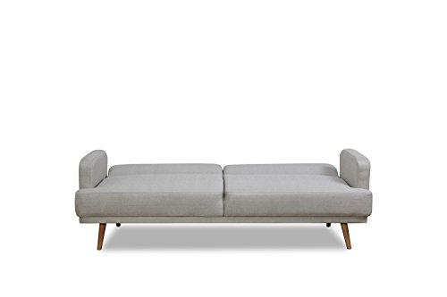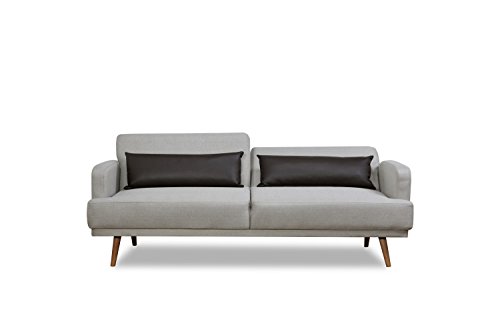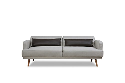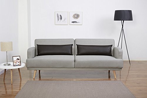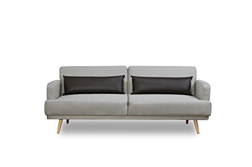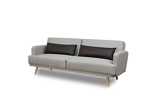 Leader Lifestyle Dante Sofa Bed in Seashell Grey Fabric with Brown Leather Cushions Sofabed, 214x115x26.5 cm