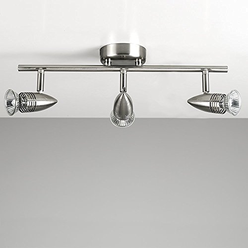 Modern 3 way straight bar design bullet head ceiling spotlight in a chrome finish. Spotlights are a great way to bring additional illumination into a room. The adjustable heads enable you to direct the light source to exactly where you want it. Ideal for use on kitchens, lounges, dining rooms and more.