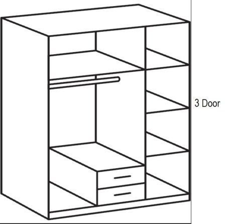 Wardrobe: Stunningly Beautiful, Large, 3-Door (1 Mirror) White & Anthracite Wardrobe With Drawer Storage. Massive Amounts Of Storage. Dimensions 135cm Width x 197cm Height x 58cm Depth. We recommend fixing these items to the wall, this will preseve the rigidity of the item. Door Step Delivery Service Only