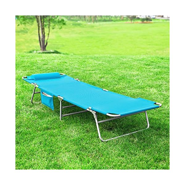 SoBuy® OGS35-B, Textoline Reclining Folding Chair, Adjustable Back Camping Chair Outdoor Garden Beach Deck Chair Sunlounger, Blue