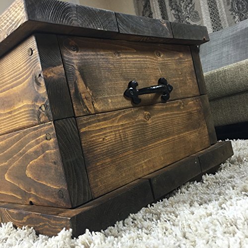 Handcafted Here in the New forest we have our lovely bespoke Coffee table Chest. Being hand made every piece is truly unique, when crafting this table we take special care in the preparation and the overall look of the finished product. Every inch is sanded down to a fine finish and all knots are evenly spaced to create the rustic look. picture represents dark and medium oak colour. Dimensions: 100cm long 60cm wide 42cm high (we also sell a lower version of this chest coffee table, please see our other amazon listings)