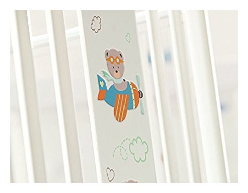 Cot Solid Wood Poles fan white aviator 023400 strictly in accordance with, the distance and the shape of the hand of sides are fundamental for the safety of the baby that a few months begins to move in the cot. Are Prepared To Less Than 6 cm. avoiding any danger. The cues are totally free of edges and proof of jumps and games. Four rubber coated “scratch with two systems of brake casters allow that the bed moves gently in anywhere in the room. Slatted orthopaedic made entirely of wood. The side flip makes it easy the movement of the mother in the first months of life of the child. Side with paramorsi in non-toxic plastic. Can be placed at two levels for Mother to facilitate the movements of the first period network. Recommended mattress 64 x 124 cm (not included), and bed sheets Standard Size Duvet Set (not included) – Point White Aviator measures Dimensions 132 x 72 x 103 cm Material content Wood Painted Water Assembly assemble pieces 1 wheels 4 castors, two with brake, rubber coated