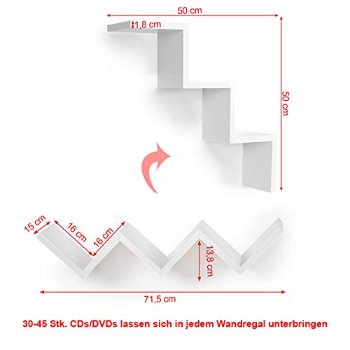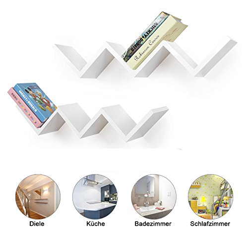 Songmics floating wall shelf uses high quality MDF wood, tested in accordance with the E1 environmental standard. It is environmentally friendly, moisture proof and resists deformation with its large bearing capacity. Smooth surface coated with non-toxic and waterproof paint. With its novel design and modern style, it is the perfect shelf to store and display CD, DVD, books, toys and so on.