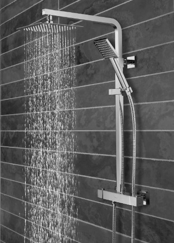 Tavistock Index Square Thermostatic Exposed Shower Bar Valve Tap Mixer 8″ Over Head Super Slim Rain Shower Telescopic Rigid Riser Slider Rail Kit Hand Shower