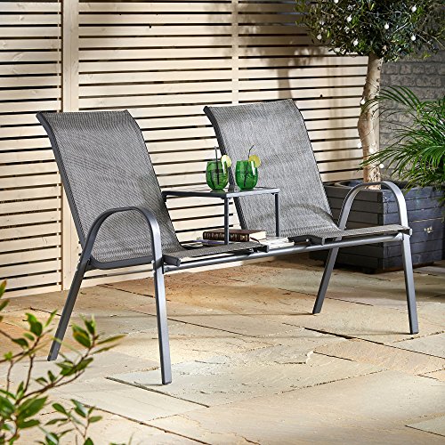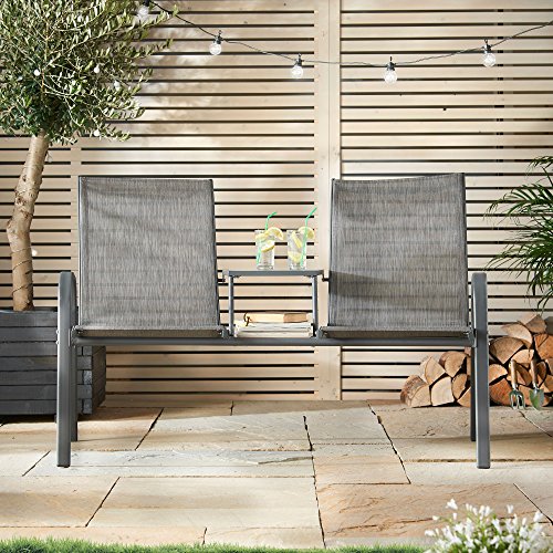 The loveseat benefits from a powder-coated steel frame as well as a close-weave easy-clean textoline fabric. The cleanline design and modern grey colourway will add a contemporary feel to any outside space.