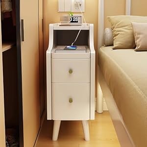 Mid Century Style Narrow Side Table with 2 Drawers Modern End Table for Small Spaces Stylish Bedside Table for Bedroom or Living Room Off Nightstand with Storage