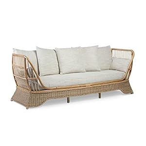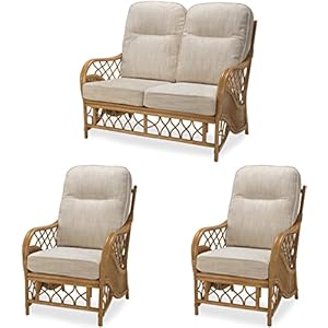 Desser Oslo Rattan Conservatory Furniture Set – 2 Seater Sofa & 2 Armchairs – Fully Assembled Luxury Indoor Natural Cane Wicker Chairs & Settee Suite with UK Made Cushions – Jasper Fabric
