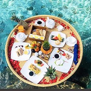 Rattan Woven Serving Tray Food Tray with Handles Floating Tray Luxury Floating Serving Tray Table Bar Swimming Pool Floating Tray for Pool Serving Drinks Brunch Food On The Water 3