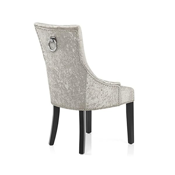 This is a sophisticated addition to your interior, guaranteed to impress. Crushed mink velvet covers a belted seat pad, combining comfort and style. The seat is edged with chrome studs whilst the backrest features a chrome ring on the rear for a decorative touch. Solid wooden legs provide a sturdy base and have a black satin finish with protective floor plugs. The Ascot Dining Chair Mink Velvet is a great statement chair. Dimensions: Seat Height: 46cm Overall Height: 99cm External Seat Width: 57cm Backrest Height: 57cm Seat Depth: 45cm Overall Seat Depth: 59cm