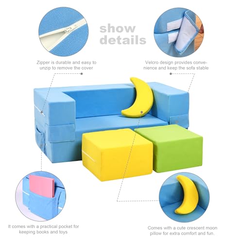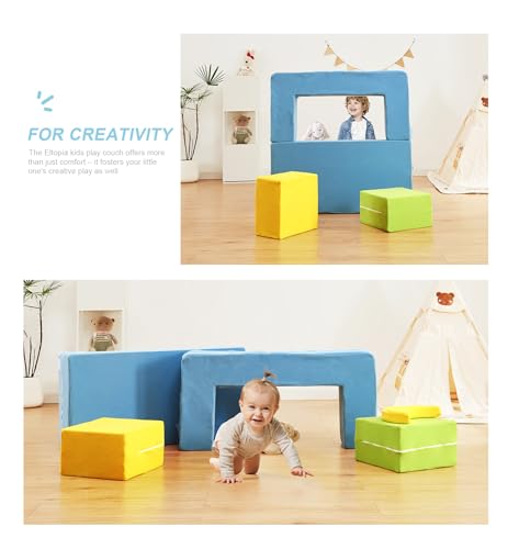 Elftopia Modular Kids Sofa,Toddler Couch Foam Armchair for Kids, Children Convertible Plush Sofa Play Set,Fold Out SofaBed