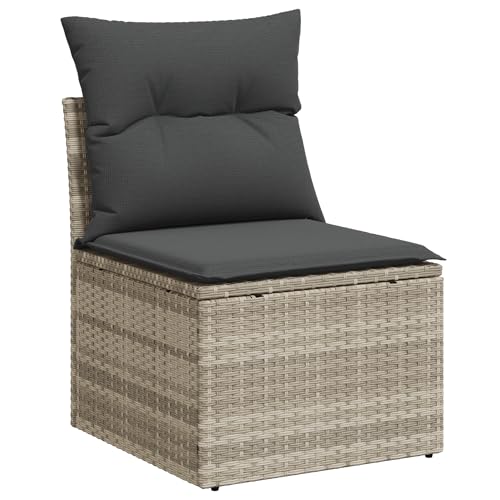 Outdoor Outdoor Seating,Outdoor Sofas-8 Piece Garden Sofa Set with Cushions Light Grey Poly Rattan