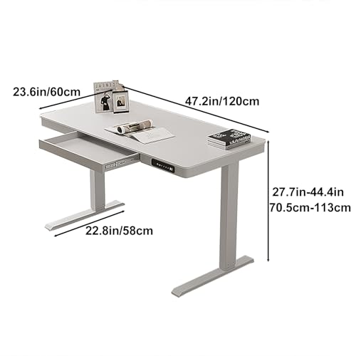 Height Adjustable Electric Standing Desk with Drawer 27.7″-44.4″ Memory Preset USB Ports Sit-Stand Home Office Gaming Table (White 47.2″/120cm)