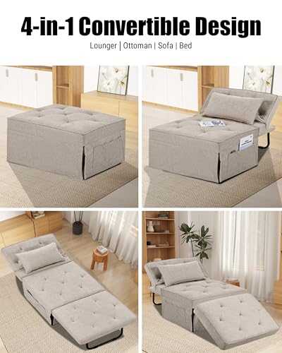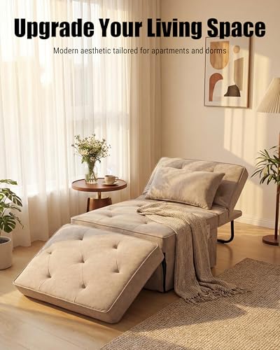 【 Premium Comfort, Simplified Design】Crafted in linen-look fabric, our folding sofa bed chair maintains elegance while prioritizing comfort. High-density foam ensures lasting resilience for optimal relaxation or sleep