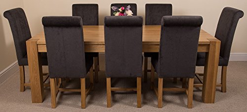 The Kuba solid oak dining set comes with 8 beautifully designed Washington fabric chairs, upholstered in a dark grey velvet effect fabric sure to complement any colour scheme. The chairs boast a solid hardwood frame and braced oak wood legs for added strength. The seats are particularly comfortable with a high back scroll top and spring and belt construction beneath medium density foam. The chairs are delivered fully assembled and ready for your next dinner party!