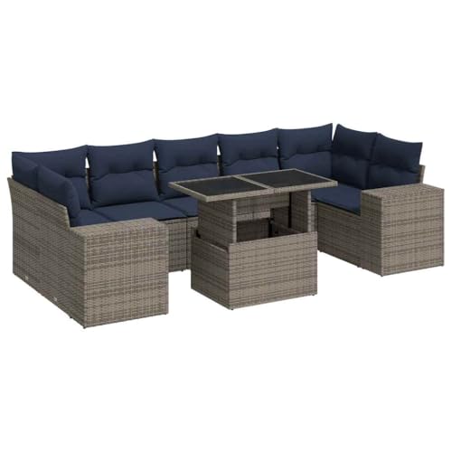 Outdoor Furniture-Outdoor Furniture Sets-8 Piece Garden Sofa Set with Cushions Grey Poly Rattan Acacia