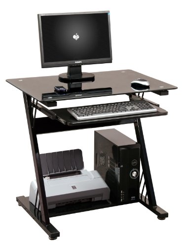 Sleek black glass z-shape computer desk with pull out keyboard. Includes a slide out shelf perfect for your keyboard. The legs are steel and the frame has a unique design. There is also a shelf underneath for your PC tower and printer. This desk has a good solid build quality, being made to the highest standard. The desk is hard wearing and durable. This desk comes flat packed with detailed instructions for assembly. Dimensions: Height 76cm x Width 80cm x Depth 60cm. N.B. We DO NOT offer delivery to the following post code areas: KA27-28; PA20-61; PH11-44 & PO28-41. For all central mainland locations our goods are shipped on a next day service, with deliveries Monday-Friday anytime from 7am to 7pm unless noted otherwise. For offshore or highland post codes not listed above delivery can take up to 7 working days from dispatch. Drivers do not call before delivery. Delivery is to the front door of the main building and goods are not taken upstairs or into lifts. There is a possibility of a charge being issued for any missed deliveries.