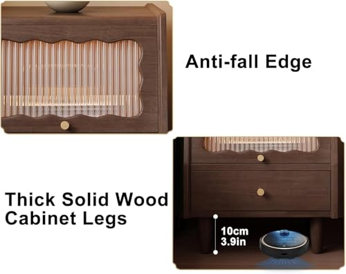 Versatile Design: Features two style options with rattan or glass doors. Dimensions are 43.5×40×48cm, with side rails to secure items and rounded corners for safety.